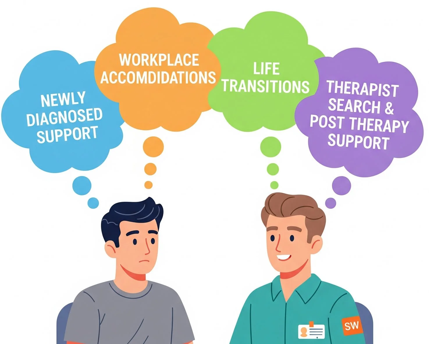Workplace Advocacy recieving guidance on understanding rights, initiating conversations about accommodations, and managing the anxieties of disclosure in a professional setting.
